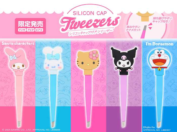 お気に入りのキャラを、いつもそばに♡粧美堂から、サンリオキャラクターズ&アイムドラえもんとコラボしたシリコンキャップ付きツイーザーが登場。全国のドン・キホーテ系列店舗にて、2025年7月下旬より順次発売スタートです。「マイメロディ」や「クロミ」「シナモロール」など、人気キャラが大集合♪かわいさも実用性もばっちりなアイテムは、持っているだけで気分もアップしそう♡