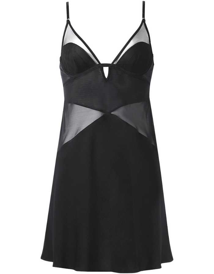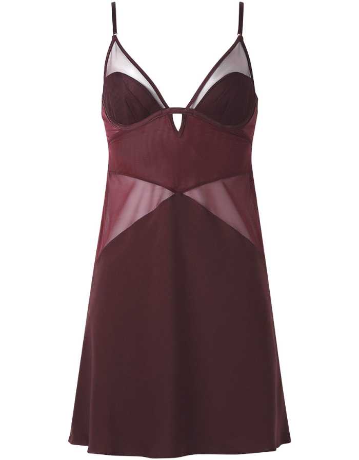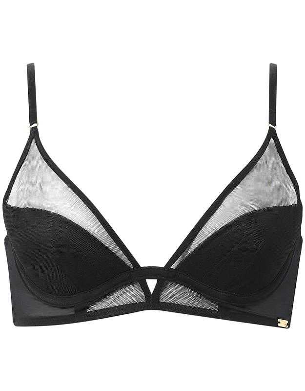 前中心にL字ワイヤーを採用し、着け心地は軽やか。マットなサテンパイピングや肌がのぞくVラインで、女性らしさを引き立てるデザイン。