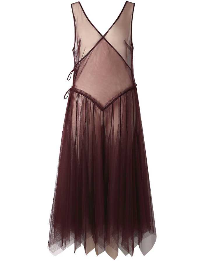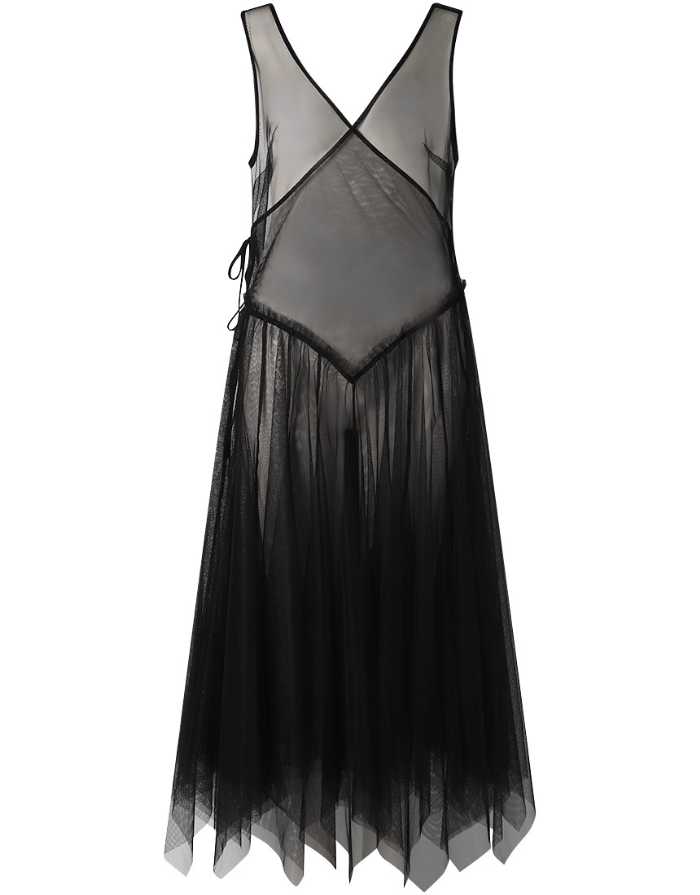 24枚のチュールが織りなす、YueらしさとFETICOの美意識が融合したマキシドレス。動くたびに揺れる裾の表情が圧巻です。