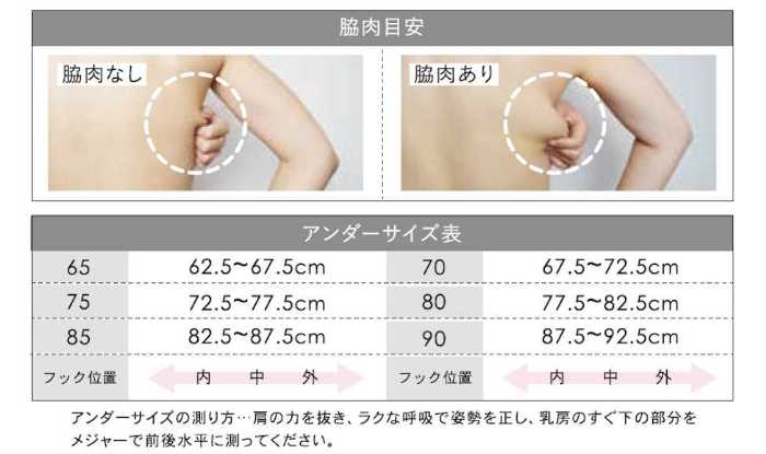 また、サイズガイドには脇肉の有無やホック位置の違いも紹介されていて、細やかな配慮が光ります。