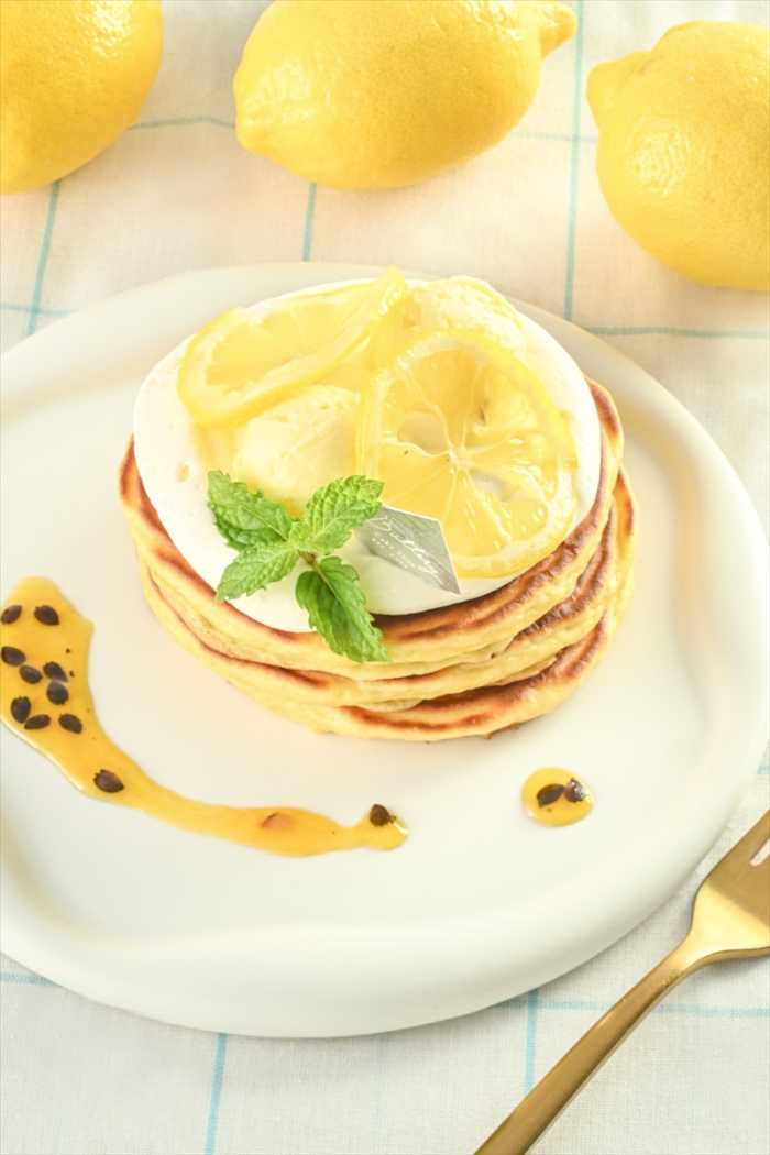 「レモンパンケーキ」(1,450円・税込)は、口当たりなめらかなマスカルポーネ入りの生地を、こだわりの銅板でふっくら焼き上げた自信作。