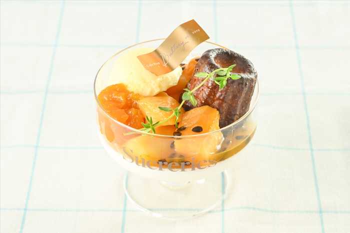 「カヌレパフェ」(1,050円・税込)は、フランス産発酵バターと北海道バターを贅沢に使用したButtery自慢のカヌレに、マンゴーやマンゴージュレ、パッションフルーツソース、バニラアイスをトッピング。