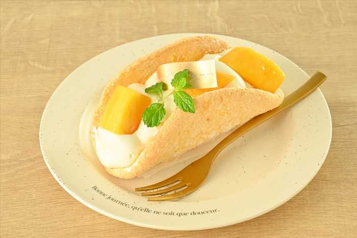 「マンゴーオムレット」(550円・税込)は、しっとり焼き上げたビスキュイ生地で、特製のレモンクリームとジューシーなマンゴーをサンド。