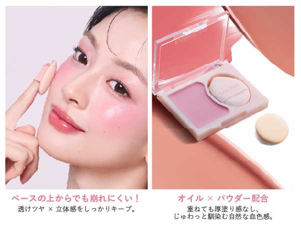 自然な発色と軽やかな質感で、厚塗り感が出ず、重ねづけしても美しくぼかせるのが嬉しいポイント。朝のメイク時間が短縮できるうえ、持ち歩きにも便利なコンパクトサイズも魅力です。