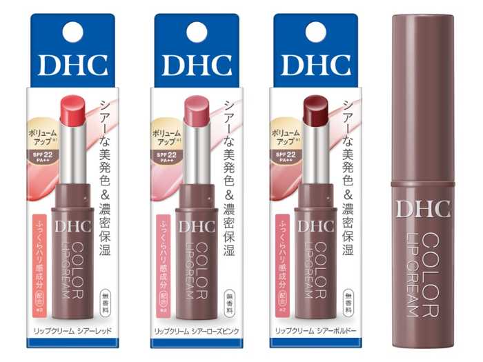新登場の「DHCカラーリップクリーム」は、シアーな発色とボリューム感が魅力。レッド・ローズピンク・ボルドーの3色展開で、日常メイクにもぴったり。