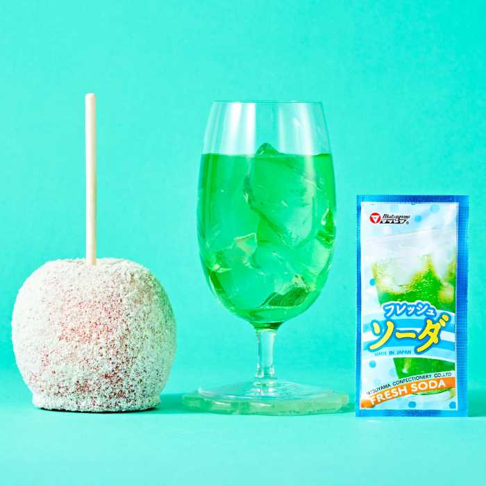 本格派りんご飴で話題の「Candyapple」が今回手を組んだのは、昭和レトロな駄菓子「フレッシュソーダ」。