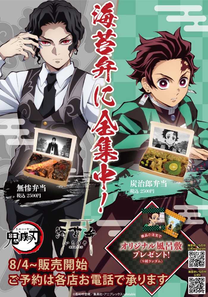 アニメ「鬼滅の刃」ファン必見!大人気海苔弁専門店「海苔弁いちのや」から、劇場版『無限城編 第一章 猗窩座再来』の公開を記念したオリジナル弁当が登場します。2025年8月4日(月)より発売されるのは、竈門炭治郎と鬼舞辻󠄀無惨を“味”と“彩り”で表現した特別な2種類の海苔弁。限定の場面写風呂敷付きで、見ても食べても楽しい♡まさにファンにとっては夢のようなコラボレーション弁当です!