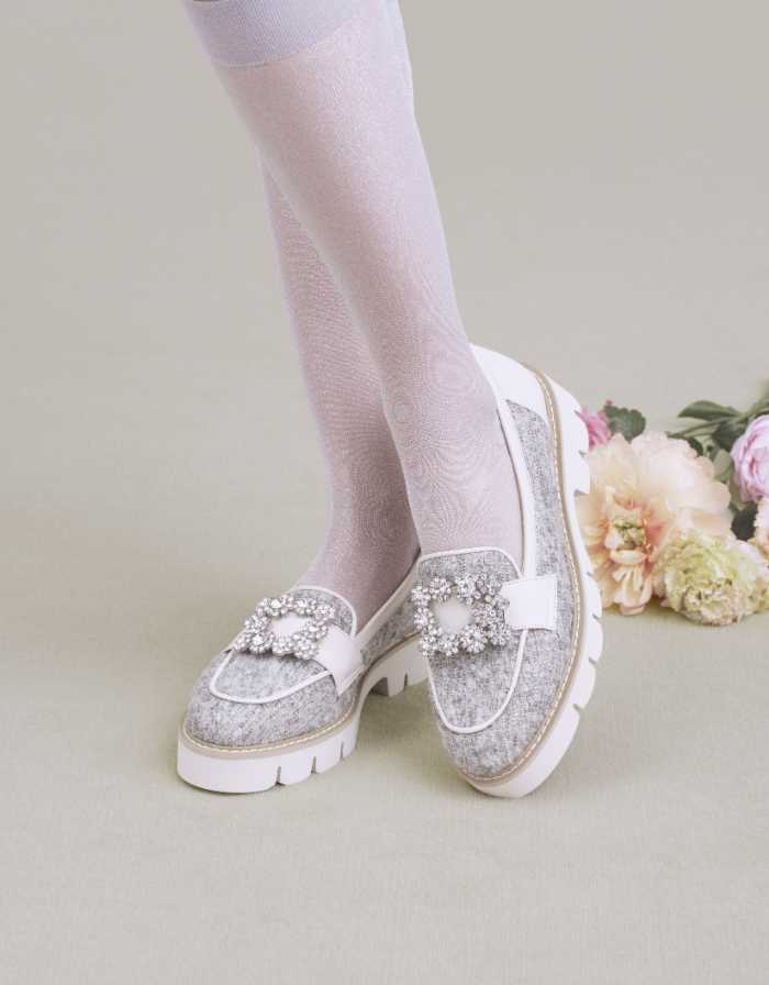 クラシカルな雰囲気を醸し出すビジューバックルローファー(FA24353)は、大人かわいい秋スタイルの名脇役。