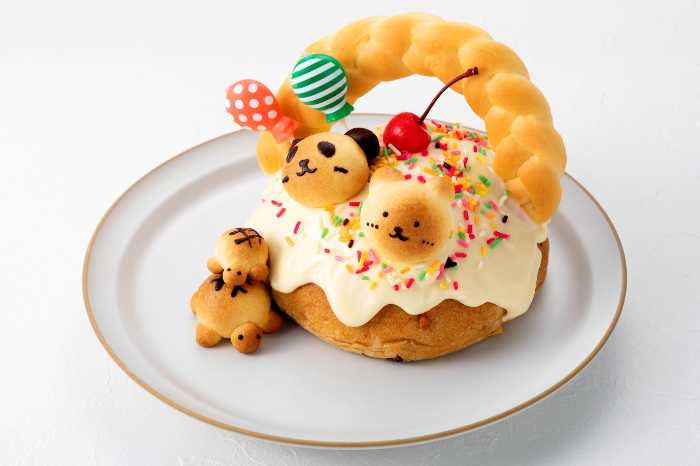 セットには、愛らしいくまやねこ、カメなどの動物パンデコやリース型パン、別添えのカスタードクリームが含まれ、トッピングのアイデア次第でアレンジは無限大。
