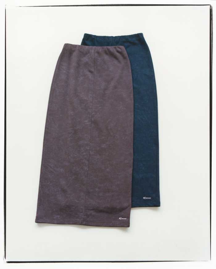 ムラ感ある風合いとスリットが魅力のスカートで、後ろのファスナーでスリットの深さも調整可能。カラーはBRWとBLK、サイズはSとMの2サイズです。