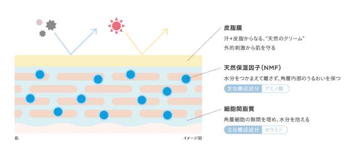※2 保湿:セリン、グリシン、グルタミン酸、アラニン、アルギニン、トレオニン、プロリン、タウリン、ロイシン、バリン、イソロイシン、フェニルアラニン