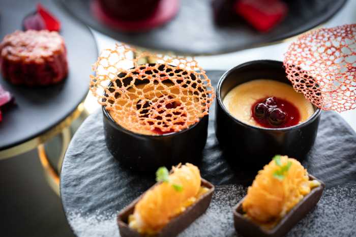 セイボリーも、フォアグラフランや竹炭パンでサンドしたチョリソーなど、贅沢感とユニークさを兼ね備えたラインアップ。シックな色合いでまとめられ、大人女性の心をくすぐります♡