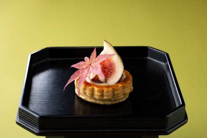 秋いちじくを贅沢に使った「パイタルト」、栗入りの「ほうじ茶ムース」も見逃せません。どれも秋の夜空に浮かぶ月や情景をモチーフにしていて、目にも心にも美しい仕上がりです♡