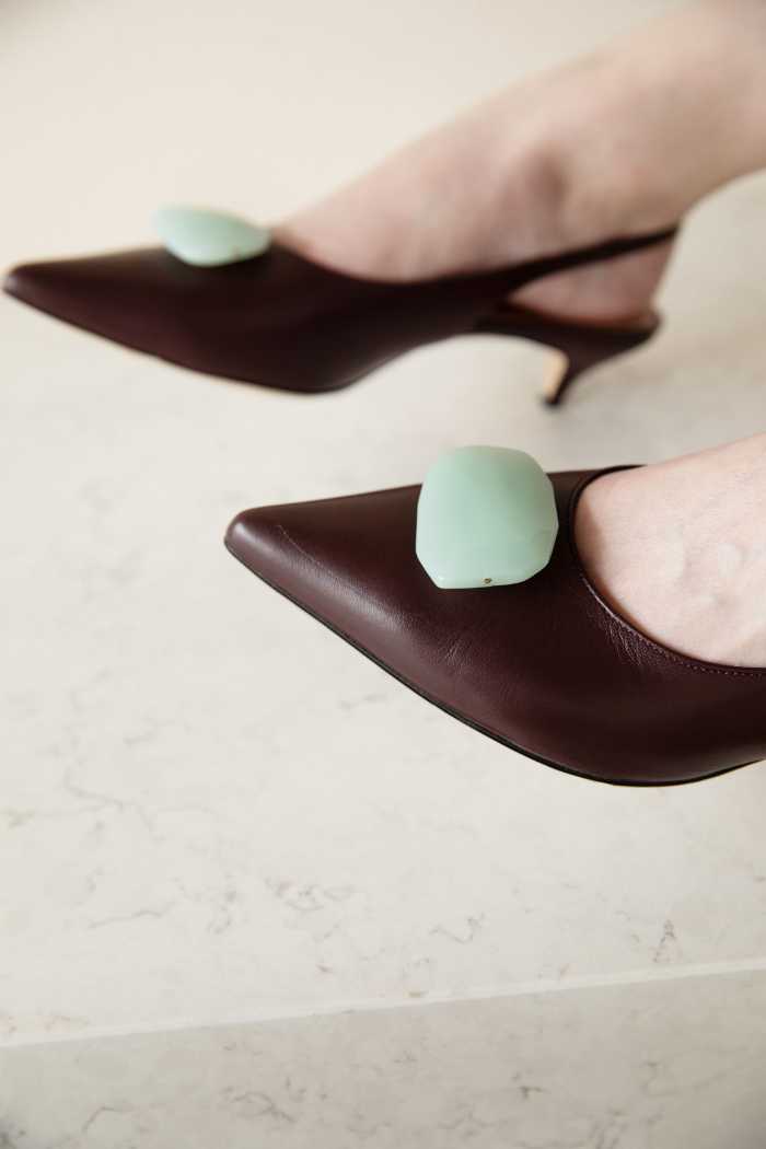 ミントグリーンやボルドー、ブラック、ディープブラウン、キャメル、ネイビーなど、カラーごとに異なる質感のストーンが、足元にやさしい陰影とエッジを加えてくれます。