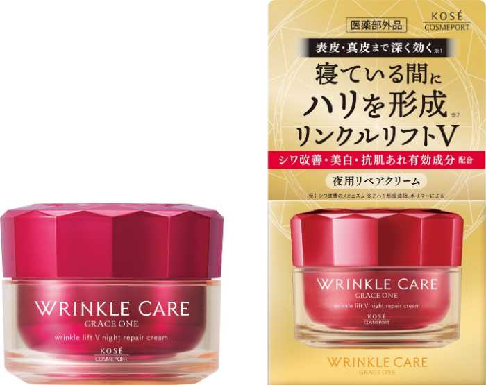 『グレイスワン リンクルリフトV ナイトリペアクリーム』は、眠っている間に肌悩みに寄り添い、翌朝の肌に変化をもたらすスペシャルケアアイテムです。