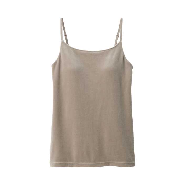 続いて、1枚でも着られる「コットンベロア ブラキャミソール」は、カップ一体型&ストラップ調整可能で機能性も抜群。