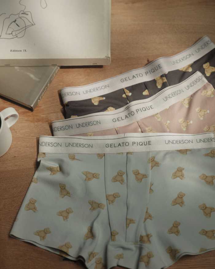 さらに、〈総柄ボクサーパンツ〉(6,490円)はベージュ、ミント、ダークグレーの3色×S〜Lのサイズ展開で、ギフトにも◎。