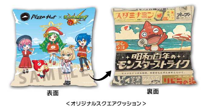 フォロー&リポストで抽選10名様にスクエアクッション、商品写真に「ガブリエルサンタからの贈り物」「ピザハットモンスト」のタグをつけて投稿すれば、ビッグステッカー5種セットが当たるチャンスも♪