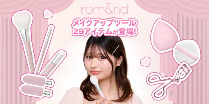 韓国発の人気コスメブランド「ロムアンド」から、日本だけでしか手に入らない限定メイクアップツールが新登場!2025年8月8日(金)※より、全国のドン・キホーテにて先行販売されます。フェイスブラシやミニキットなど、毎日のメイク時間をもっと楽しく彩る全29アイテムがラインアップ。ロムアンドの世界観を感じながら、あなただけの“かわいい”を叶えてみませんか?♪※店頭開始日となり、購入可能日は各店舗により異なります。