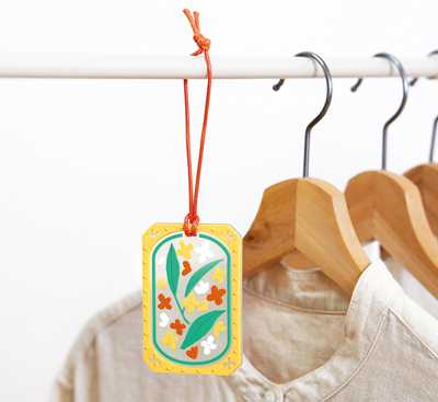 「フレグランスオーナメント」(880円)は、ステンドグラス風の吊り下げ芳香剤。クローゼットや車内、ドアノブにかけて、香りをさりげなく楽しめます。