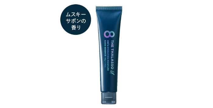 *カンナビジオール(保湿) *1 ニコチンアミドモノヌクレオチド(保湿) *2 保湿 *3 エイトザタラソ ユー ハンドエッセンスと比較して *4 テクスチャーのこと *5 海水(保湿) *6 スサビノリエキス(保湿) *7 水溶性コラーゲン(保湿)*8 エンテロコッカスフェカリス、乳酸桿菌、乳酸桿菌発酵液(全て保湿)*10 セラミドEOP、セラミドNG、セラミドNP、セラミドAP、セラミドAG(全て保湿)