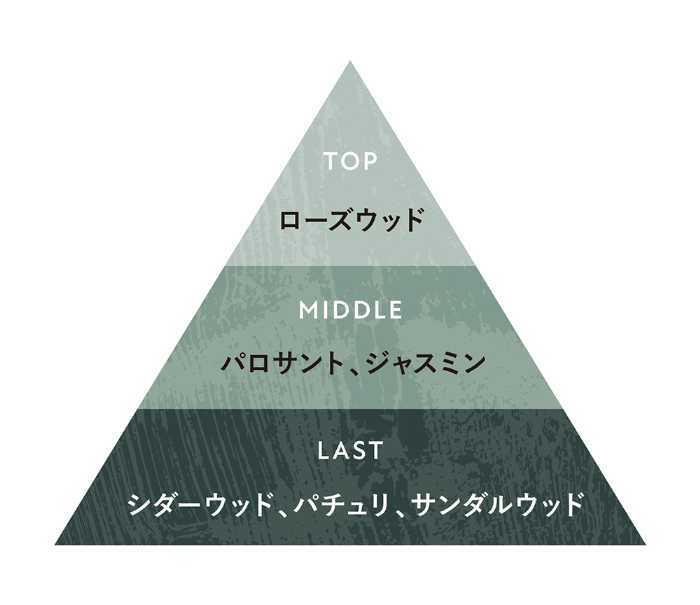BOTANIST SANTAL最大の魅力は、南米産の神秘の香木「パロサント」と、穏やかな甘さを放つ「サンダルウッド」「ローズウッド」の調和による奥深い香り。