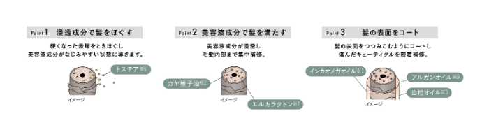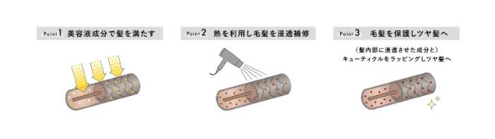 ドライヤーの熱を活かして、ダメージホールまでしっかり補修し、柔らかくまとまるツヤ髪へ導きます。