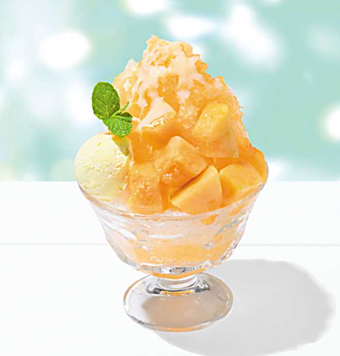 もうひとつの注目は「北海道産赤肉メロンの果肉ごろごろかき氷」。ふわふわ氷に、甘くとろけるメロン果肉と自家製メロンシロップ、さらにバニラアイスとコンデンスミルクを贅沢にトッピング。