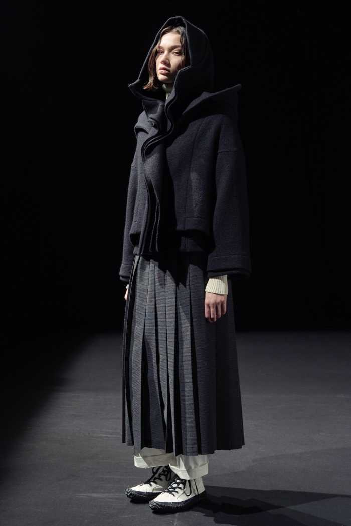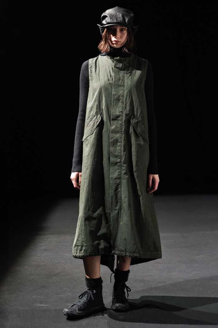 今回のラインアップでは、デザイン性と着心地のバランスにも注目。フィッシュテールとフラップが特徴的なドレス(L24)は、モッズコートの要素を取り入れたユニークな1着で、羽織りとしても活用可能。