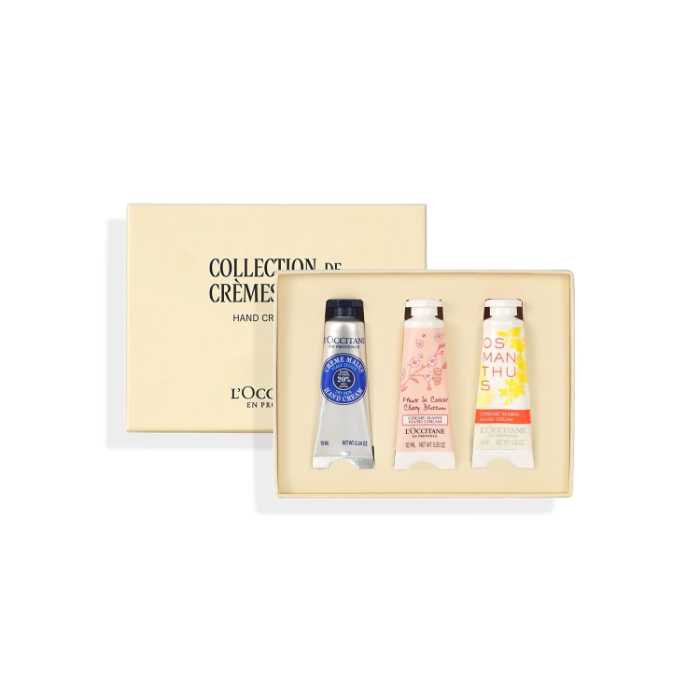 もうひとつは「ミニハンドクリームトリオ」(2,530円 税込)。シア、チェリーブロッサム、オスマンサスの3種を気軽に楽しめるミニセットで、ちょっとしたギフトにもぴったり。