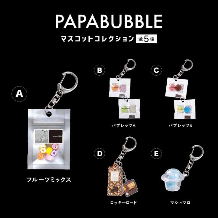 今回登場した「パパブブレカプセルトイ」は、人気商品のリアルさを追求した全5種のマスコットチャーム。