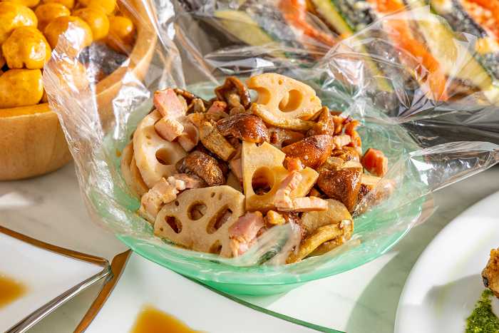 ローストビーフのポルケッタ風(土日祝限定)やライブキッチンの「鱸と香港醤油ソース」も絶品。スーパーフードのソルガムや発酵食品を使ったピザなど、からだに嬉しいメニューも豊富です。
