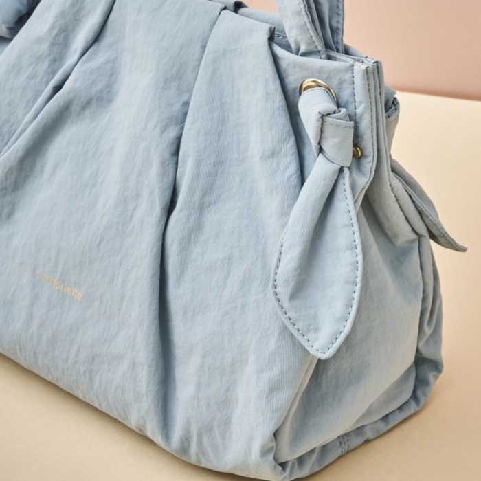 サイドノットデザインバッグは、軽量で使いやすさ抜群!サイドの結び目でショルダーの長さを調節でき、マグネット付きでマチも広げられるなど、機能面もばっちり。