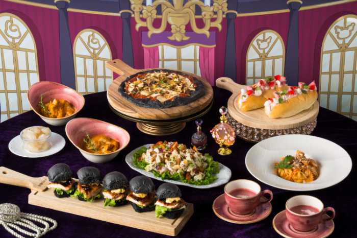 ボールルームのようなロマンティックな空間で、キャラクターたちをイメージしたスイーツ約20種類とセイヴォリー8種が楽しめます。