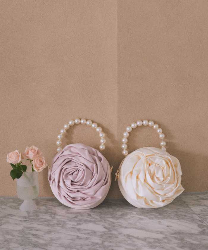 続いて、華やかなローズモチーフのショルダーバッグが登場。カラーはPinkとIvoryの2色。