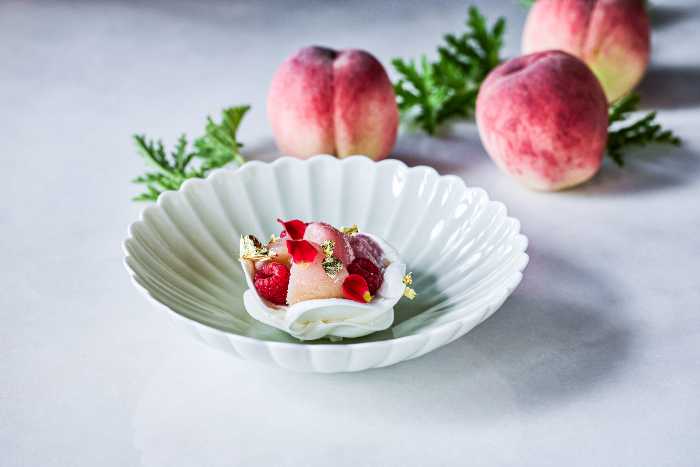 夏の旬を堪能できる「国産白桃メニュー」も見逃せません。関東近郊の名産地から届く白桃を贅沢に使用した前菜&デザートは、香り高くみずみずしい味わいが魅力♪