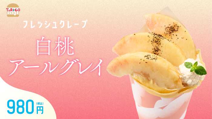 新登場の「フレッシュクレープ 白桃アールグレイ」(980円)は、ジューシーな国産白桃をたっぷりと使った季節感あふれるスイーツ。