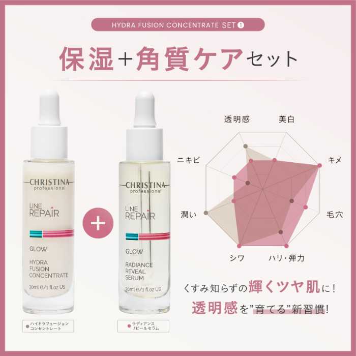 内容:ハイドラフュージョンコンセントレート(30mL)/ラディアンスリビールセラム(30mL)