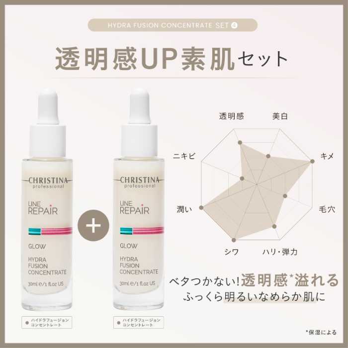 このたび発売から2周年を記念して登場した「2nd anniversary SET」は、シリーズの中でも特に人気の高い「ハイドラフュージョンコンセントレート」(高保湿・くすみケア)1本に、肌悩みに応じた美容液1本を組み合わせた数量限定のスペシャルセット。