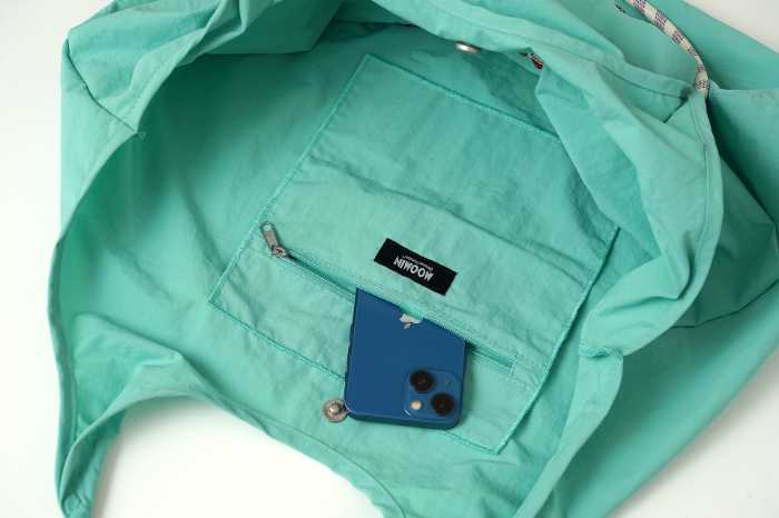 さらに、ニョロニョロ刻印のスナップボタンや丈夫なロープハンドルなど、細部までこだわりが詰まっています。