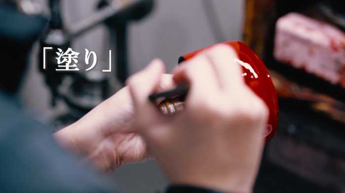 漆器の製造工程はすべて手作業。天然木を削る「木地挽き」から、丁寧に塗り・乾燥を繰り返す「塗り」、金粉で絵柄を仕上げる「蒔絵」まで、一つひとつに職人の技が宿ります。
