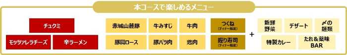 対象コース(厳選コース、国産牛コース、牛たんコース、牛たん&国産牛コース)を注文すると、なんと辛ラーメンやチュクミ、トッポギなどの韓国グルメが追加料金なしで食べ放題に!
