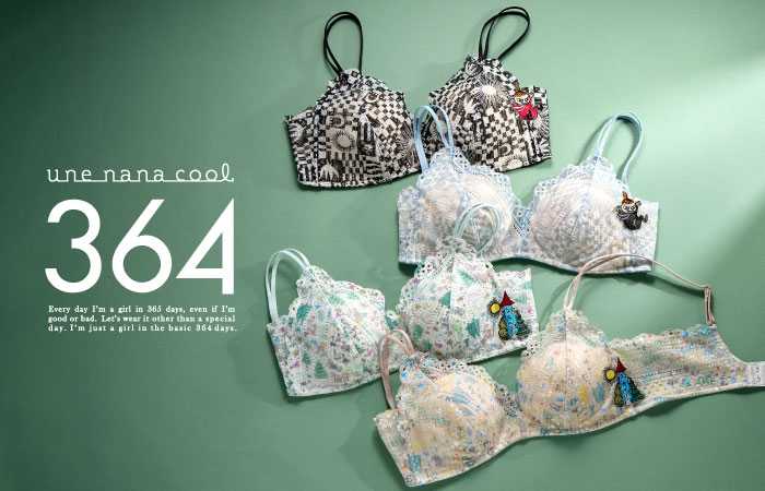 ウンナナクールの定番「364」シリーズからは、ノンワイヤーで楽なのにきれい見えする《364レース》がラインナップ。