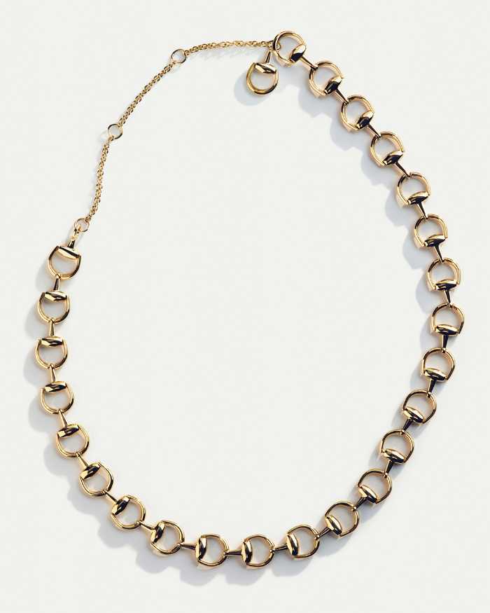 18Kイエローゴールドのラインは、強さとモダンな感性が魅力。ネックレスは同サイズまたは異なるサイズのホースビットモチーフを連ねた2種類。