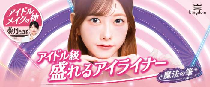 「アイドルメイクの神」夢月氏監修カラーが加わり、キングダム リキッドアイライナーTP(スリープルーフ)がパワーアップして登場。手ブレしにくく、かすれない“魔法の筆”で初心者も理想のラインを実現。さらに涙・皮脂・こすれに強い3つのプルーフ処方で、1日中美しい仕上がりをキープします。全4色展開で、日常から特別な日まで幅広く活躍する、まさに“盛れる”アイライナーです。