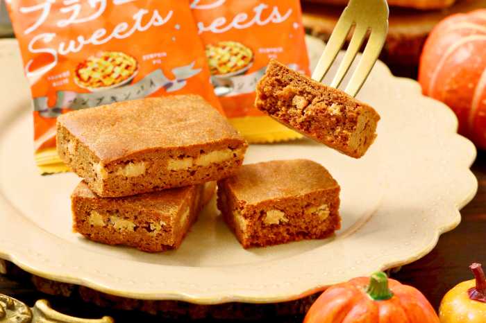 「世にもおいしいブラウニー」シリーズから、秋らしいフレーバーが新登場しました!「パンプキンパイ」と「スイートポテトタルト」を再現したこのブラウニーは、どちらも季節限定。