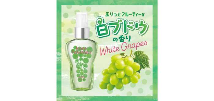 新作「ボディファンタジー ボディスプレー 白ブドウ」は、ぷりっとした白ブドウの甘さとすっきり感を兼ね備えたフルーティーな香り。