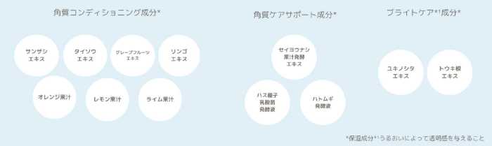 さらに7種のフルーツ由来エキスで角質をやわらかく整え、透明感*³のある明るい肌に導くんです。忙しい朝晩のケアに最適で、肌の土台からしっかりサポート♪