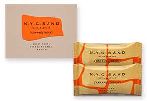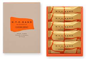 バターや生クリーム、蜂蜜を贅沢に使い、じっくり炊き上げたキャラメルヌガーにローストアーモンドを混ぜ込み、ミルクチョコレートで包み込んだ「N.Y.キャラメルブリック」。さらにカカオニブやブラッククランチ、少しのココナッツをまとわせることで、ほろ苦さと奥行きのある香りが広がります。N.Y.C.SANDが贈る秋限定の味わいは、贅沢なおやつタイムにぴったりです。