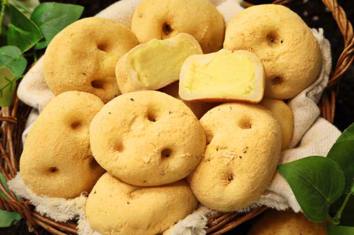 累計4万個※1を売り上げた大人気「カムジャパン」は、バター香るマッシュポテトをもっちり生地で包み、きな粉&ブラックペッパーでじゃがいもそっくりに仕上げた進化系パン(300円税込)。